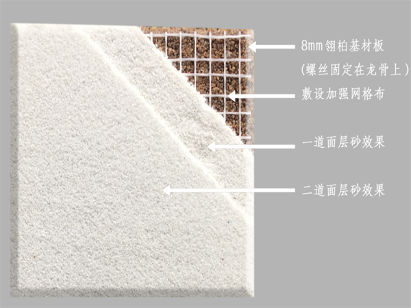 砂巖吸音板基材安裝及面層效果示意